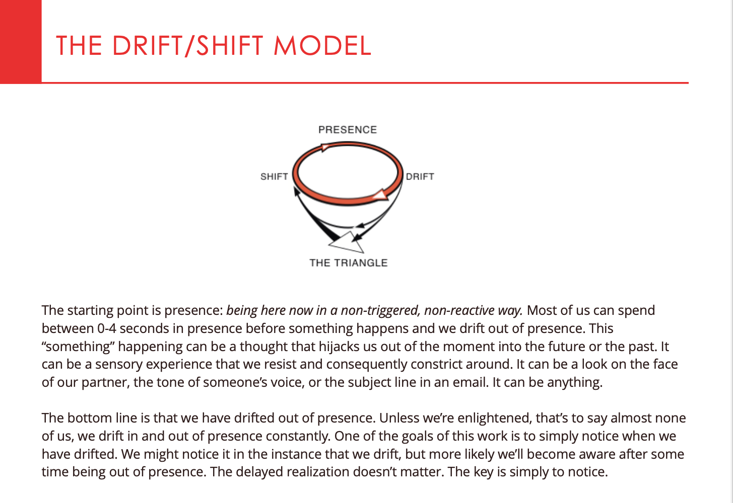 Present → Something happens → Drift → Drama Triangle → Shift
