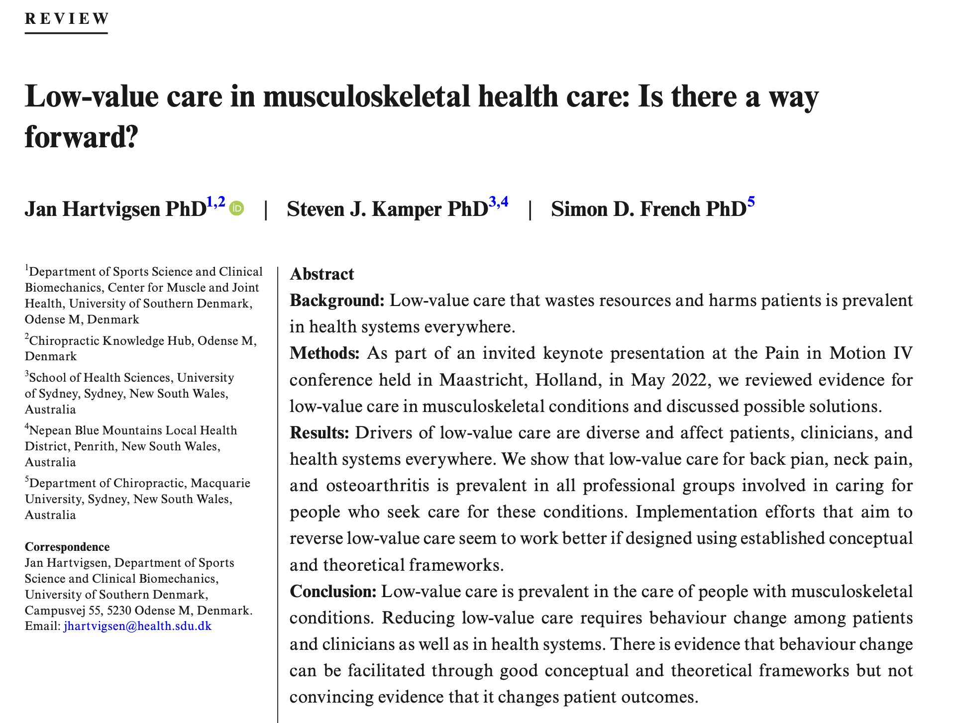 Do we have to wait for low-value care to disappear before raising prices?Not necessarily. Physio fees can rise in the short term—this is already happening. But long-term sustainability may depend on whether patients actually experience a different process of care: more active, more collaborative, more guideline-driven. At some point, payers may also start measuring outcomes and moving toward outcome-based pay, which will make quality care even more critical.
