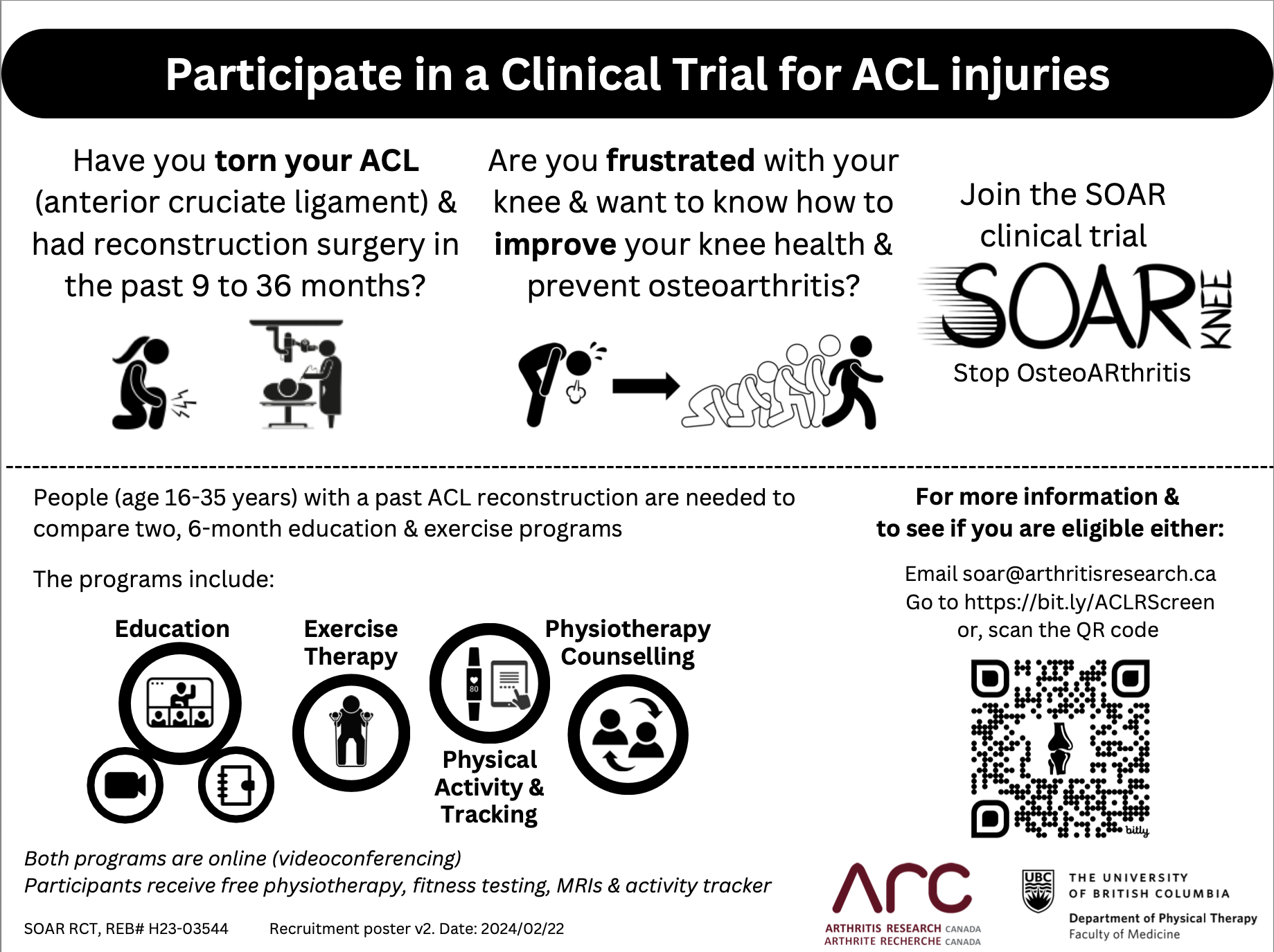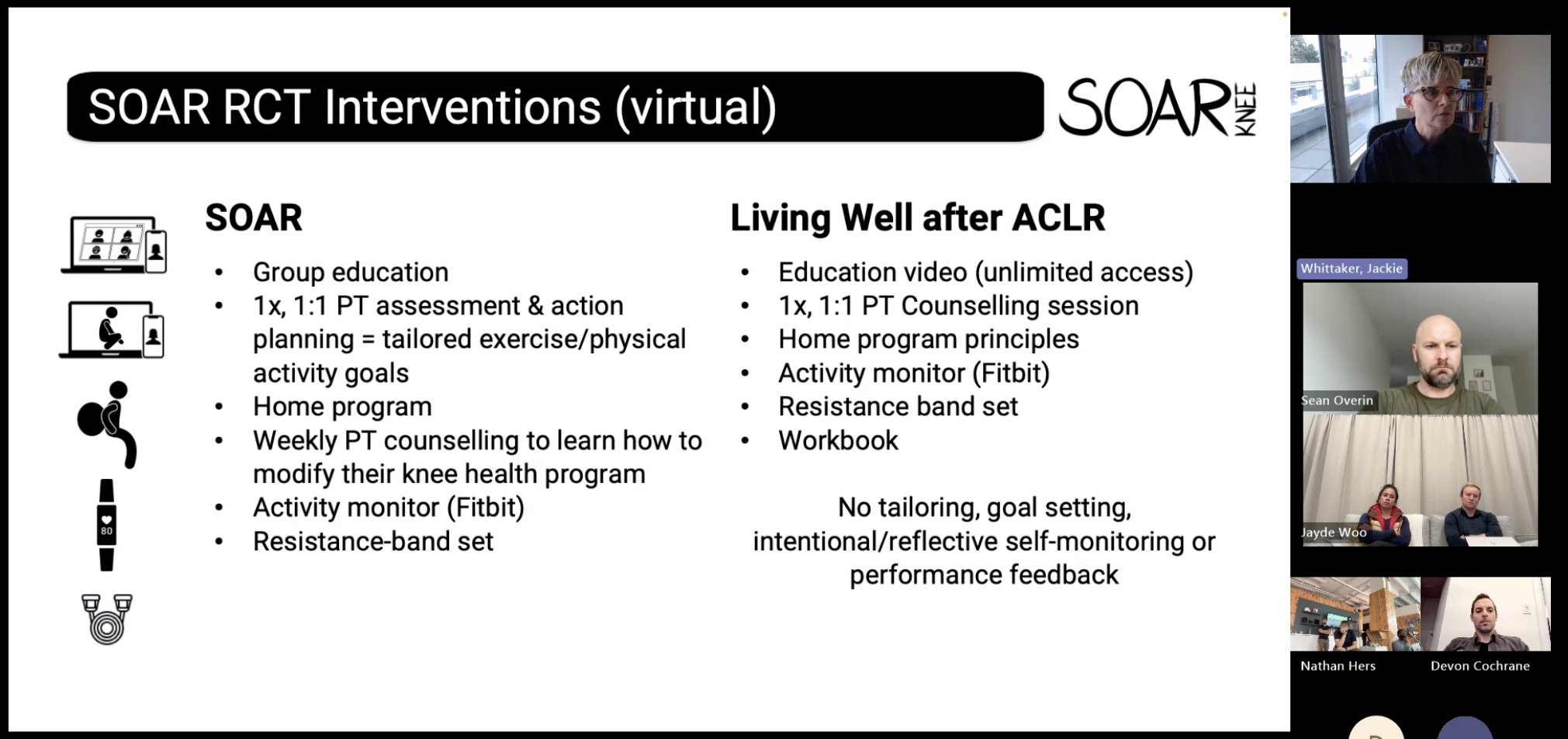 SOAR RCTSOAR (Stop OsteoARthritis) is a program that helps people recovering from knee injuries rebuild strength, stay active, and lower their long-term OA risk.The RCT showed it works — it’s effective, cost-saving, and ready to be delivered by community clinicians like us.