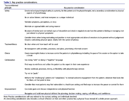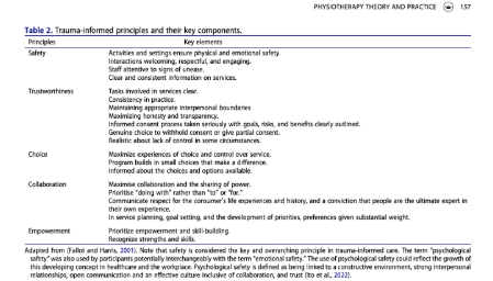 Heywood and colleagues (2024) took a close look at physiotherapy practice in a large Australian hospital and mapped what they saw against the five trauma-informed care (TIC) principles: